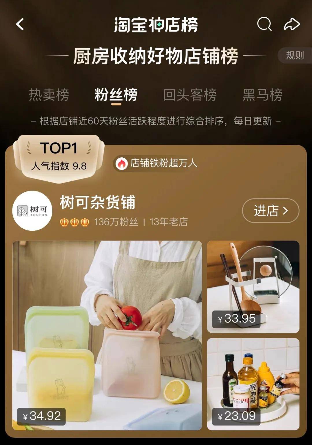 兩人共同創(chuàng)辦的品牌樹可,迄今在全網(wǎng)擁有250萬粉絲,2023年銷售額超過2億元,位居淘寶廚房收納好物店鋪榜粉絲榜TOP1,部分平臺復(fù)購率超50%,“每年有200萬個家庭,用到我們的東西”。