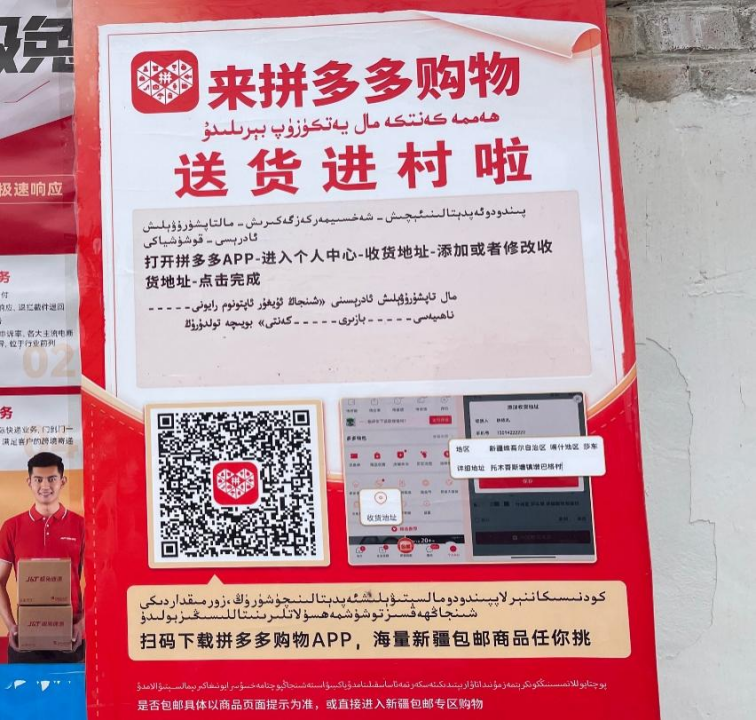 2023年7月,拼多多聯(lián)合第三方物流服務(wù)運(yùn)營(yíng)商,率先在喀什地區(qū)莎車縣試點(diǎn)快遞進(jìn)村服務(wù),將末端配送網(wǎng)點(diǎn)與消費(fèi)者的距離從幾十公里縮短至幾公里,簽收時(shí)效也從幾天壓縮到24小時(shí)內(nèi)。兩個(gè)月后,這項(xiàng)服務(wù)走出莎車縣,向全疆推廣;而截至去年10月中旬,已實(shí)現(xiàn)對(duì)全疆60個(gè)縣域的覆蓋。