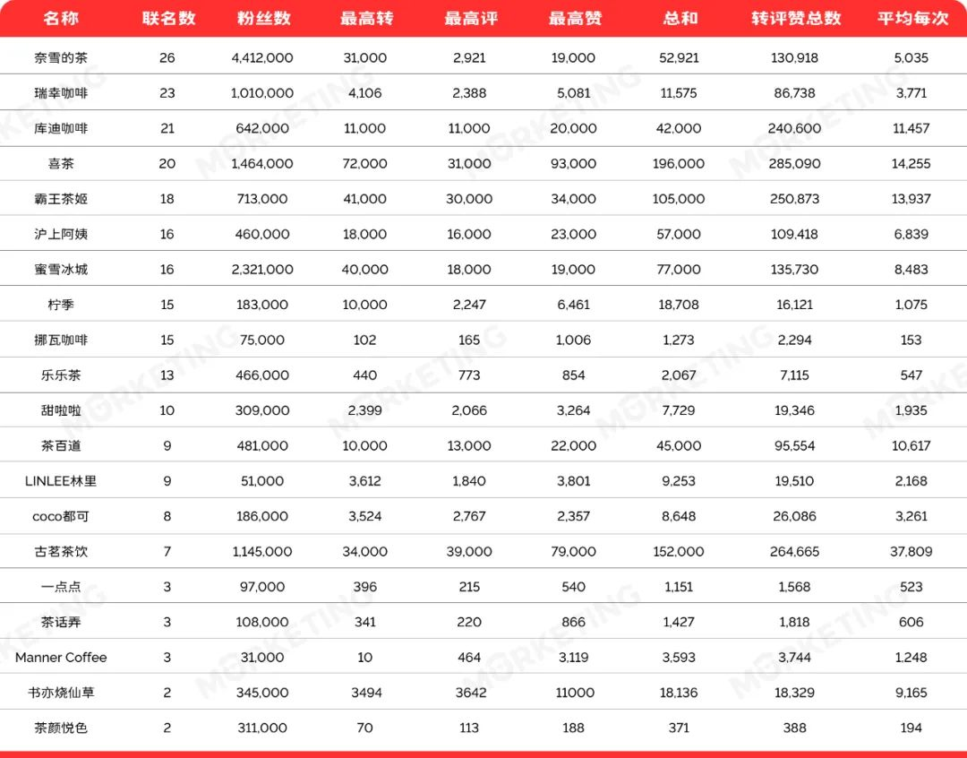 咖啡茶飲品牌今年上半年聯(lián)名數(shù)據(jù)(圖源:Morketing)