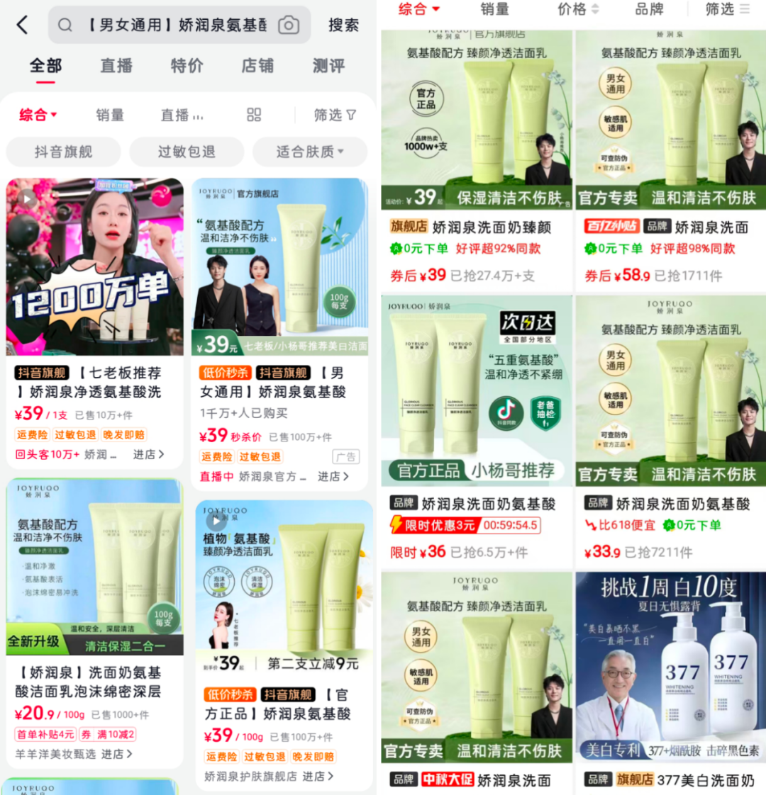 青眼情報(bào)數(shù)據(jù)顯示,2023年,國際彩妝大牌在淘系、京東等平臺的GMV同比下滑6.1%和22.1%,線上購物平臺的傳統(tǒng)營銷渠道開始步入瓶頸,接觸抖音等下沉平臺的帶貨主播成為彩妝品牌獲得新增長點(diǎn)的重要方式。而這,正是小楊哥翻身的機(jī)會。