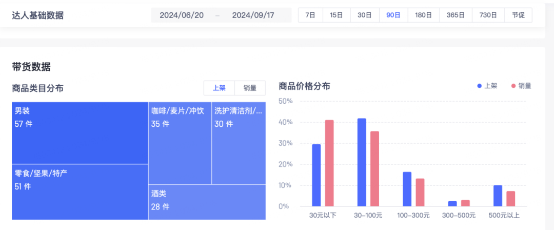 圖:小楊哥帶貨商品類目及價格分布