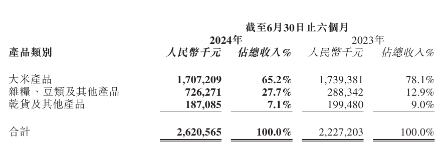 只是細(xì)看財(cái)報(bào)不難發(fā)現(xiàn),十月稻田的主營(yíng)業(yè)務(wù)大米產(chǎn)品在上半年?duì)I收同比微幅下滑,反而是以玉米為核心的雜糧、豆類(lèi)及其他產(chǎn)品在上半年實(shí)現(xiàn)迅猛增長(zhǎng),營(yíng)收7.26億,同比增長(zhǎng)151.9%。