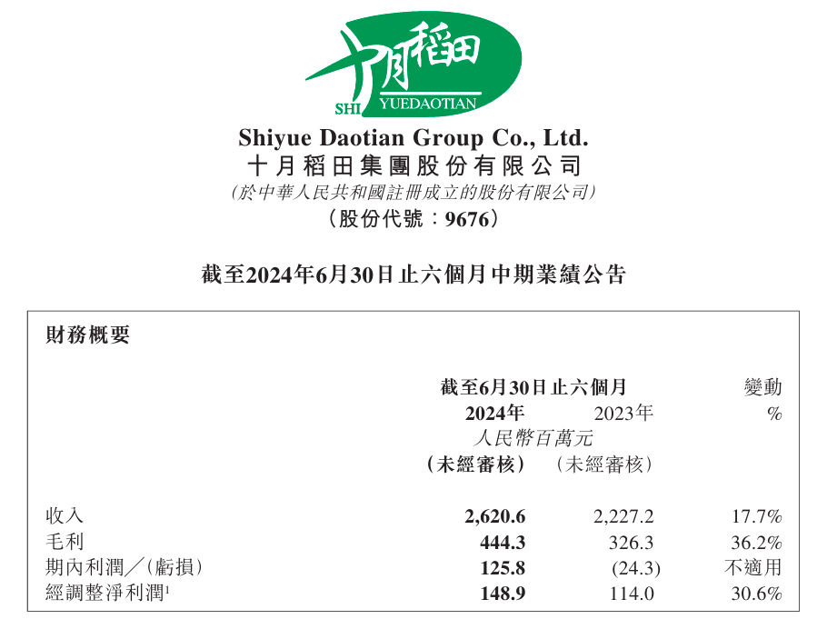 繼2023年10月12日成功上市后,主營(yíng)農(nóng)產(chǎn)品的十月稻田交出了首份半年報(bào)。