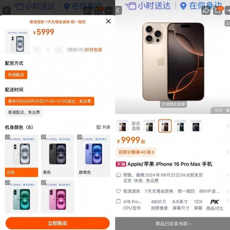 淘寶小時(shí)達(dá)頻道,部分店鋪的Pro Max系列已售罄