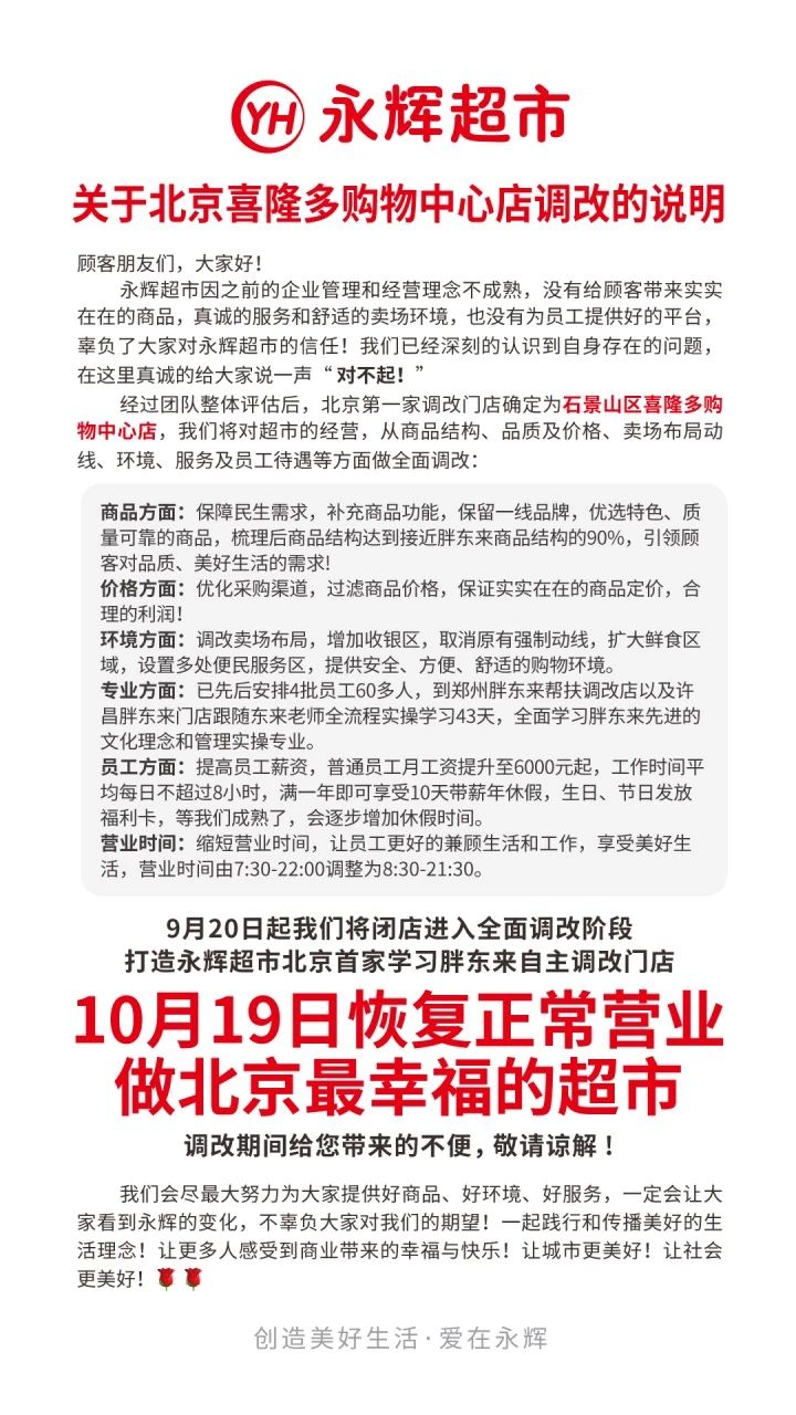 永輝北京首家自主調(diào)改店啟動(dòng)閉店調(diào)改