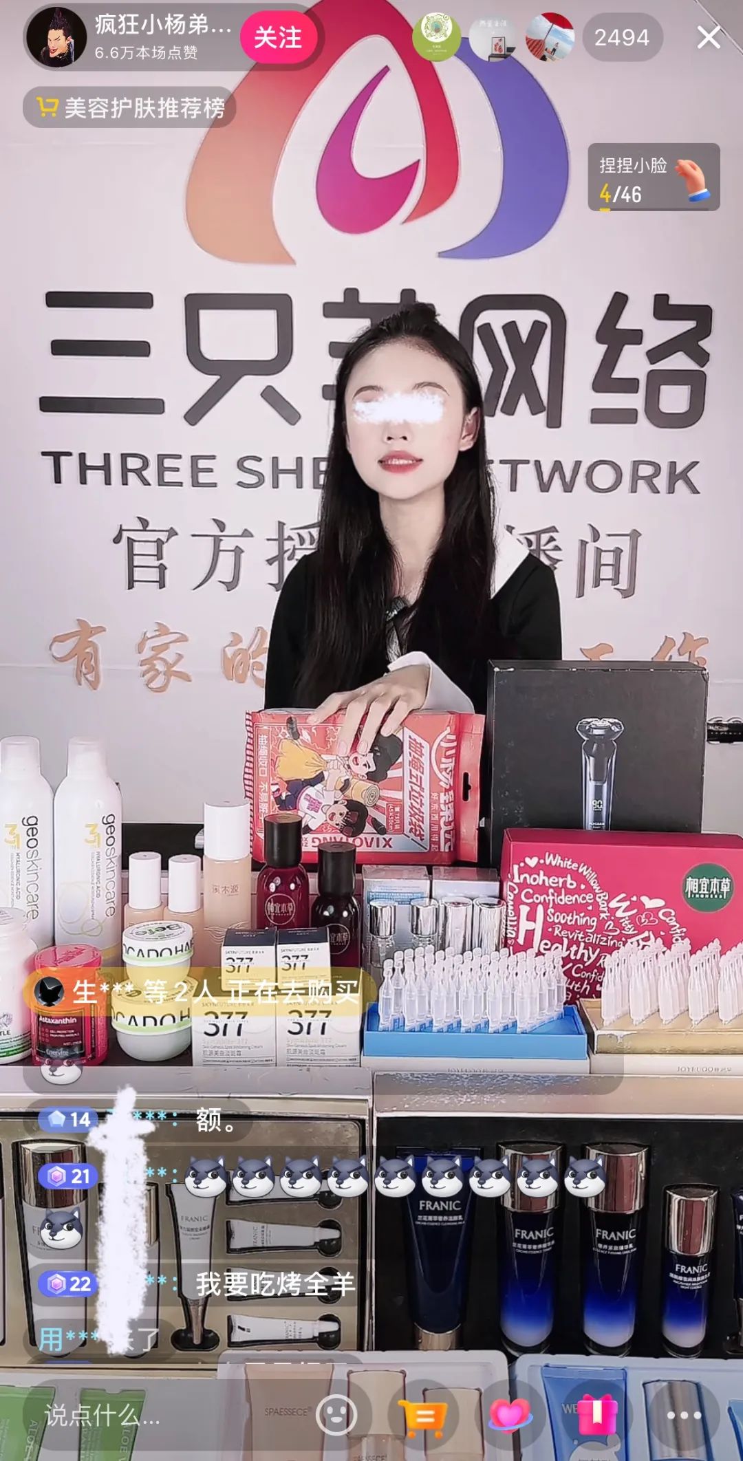 其中,“瘋狂小楊弟(三只羊)”5點(diǎn)59分開(kāi)播,下午2點(diǎn)41下播,全程7個(gè)多小時(shí),帶貨213件商品,包括美容護(hù)膚、個(gè)人護(hù)理、護(hù)理電器、酒類(lèi)、生鮮等。平均在線超9000人,累計(jì)觀看人次達(dá)到477萬(wàn),銷(xiāo)售額約25萬(wàn),相關(guān)帶貨數(shù)據(jù)遠(yuǎn)遠(yuǎn)高于平日。