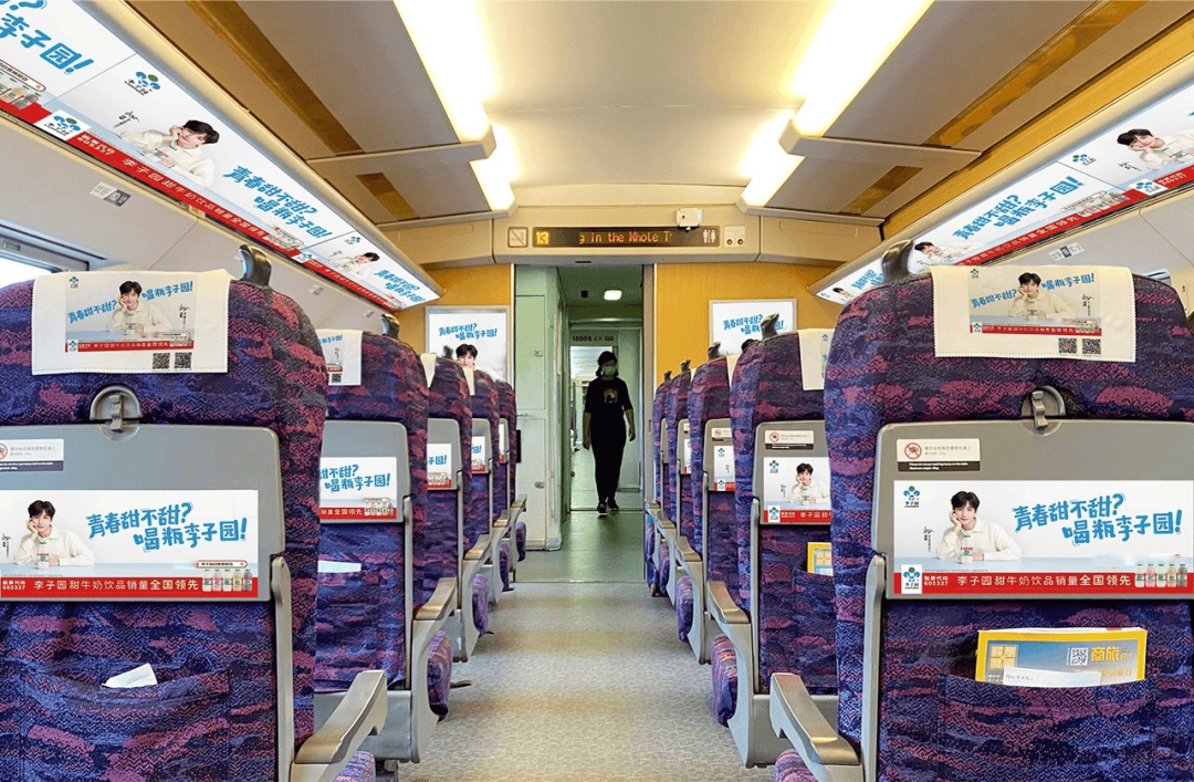 今年,李子園的橫幅廣告也越來(lái)越頻繁地出現(xiàn)。4月份,李子園官宣“流量藝人”成毅為品牌代言人,一度登上微博熱搜;之后還包下數(shù)十輛輛高鐵廣告,車(chē)身、車(chē)內(nèi)全是“李子園 X 成毅”的廣告。李子園或想借力粉絲經(jīng)濟(jì),吸引年輕消費(fèi)群體。