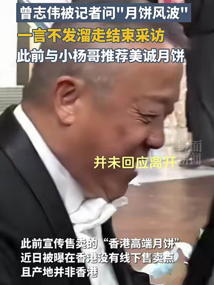 當曾志偉在港姐決賽的現(xiàn)場上被問及美誠月餅事件時,他裝作沒有聽見問題匆匆離場。