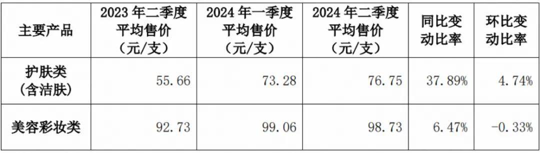 以企業(yè)側(cè)的經(jīng)營數(shù)據(jù)為例,自2020年推出大單品后,珀萊雅主營的護(hù)膚品,產(chǎn)品平均售價(jià)從23元左右,飆升至2024年的約76元,漲幅接近4倍。而2020年中期,企業(yè)營收是13.84億元,2024年是50.01億元,差不多也是漲了近四倍,但是從其產(chǎn)品銷量來看,這四年間,從半年賣2600萬支,增長至半年賣3000萬支,增幅只有15.38%。也就是說,珀萊雅高歌猛進(jìn)的業(yè)績,主要靠的不是銷量增長,而是大單品策略下,產(chǎn)品價(jià)格帶的上移,以此撬動(dòng)更大營收和利潤。