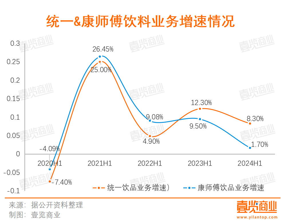這么看來(lái),康師傅和統(tǒng)一在今年上半年凈利潤(rùn)的增長(zhǎng)還跑贏了整體大盤(pán):2024年H1,統(tǒng)一凈利潤(rùn)增速達(dá)8.3%,康師傅凈利潤(rùn)增速達(dá)1.7%。