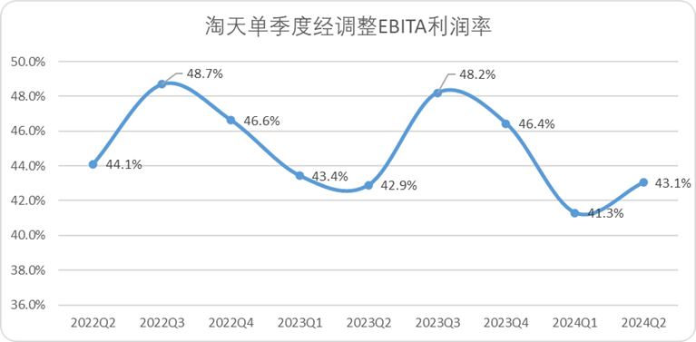 圖:淘天單季度經(jīng)調(diào)整EBITA利潤(rùn)率,來源:企業(yè)財(cái)報(bào),錦緞研究院