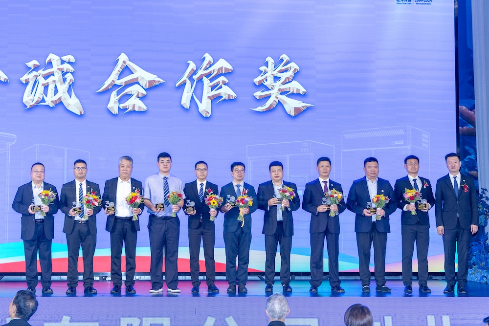 為表彰企業(yè)發(fā)展三十年歷程中的貢獻(xiàn)者,公司表彰了五位自公司創(chuàng)立之初便與企業(yè)同呼吸、共命運(yùn)的老員工,為其頒發(fā)了“三十載奉獻(xiàn)獎(jiǎng)”,感謝他們多年來的忠誠(chéng)與貢獻(xiàn);“感恩同行獎(jiǎng)”授予了三位雖已從公司退休,卻始終心系企業(yè)發(fā)展并給予支持的退休員工;“創(chuàng)新團(tuán)隊(duì)獎(jiǎng)”頒發(fā)給了智能奶茶機(jī)項(xiàng)目組,以肯定他們?cè)趧?chuàng)新領(lǐng)域所取得的杰出成績(jī);“精誠(chéng)合作獎(jiǎng)”頒發(fā)給了20位合作伙伴,這不僅是對(duì)合作伙伴長(zhǎng)期以來攜手并進(jìn)、共同成長(zhǎng)的認(rèn)可,也象征著我們?cè)谧非笞吭降牡缆飞,因團(tuán)結(jié)協(xié)作而迸發(fā)出的強(qiáng)大合力。