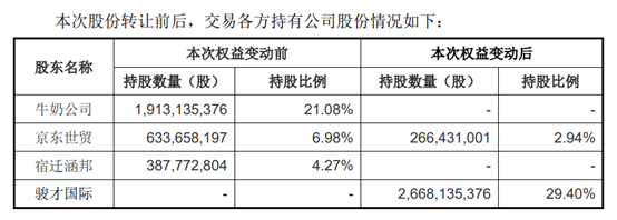 以此計(jì)算,交易前的最大股東牛奶公司拿著45億元離場(chǎng),而京東總共套現(xiàn)約17.7億元。