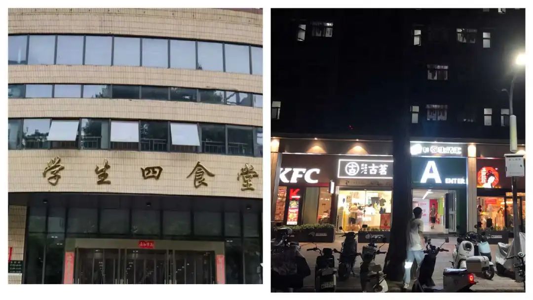 學(xué)生自習(xí)完,可以吃上一份熱乎乎的飯,這也是校園內(nèi)商業(yè)區(qū)存在的意義。根據(jù)大眾點(diǎn)評,老鄉(xiāng)雞武大店的營業(yè)時(shí)間拉長到了晚上10點(diǎn)半,其他連鎖快餐品牌的營業(yè)時(shí)間也多在9點(diǎn)、10點(diǎn)左右。