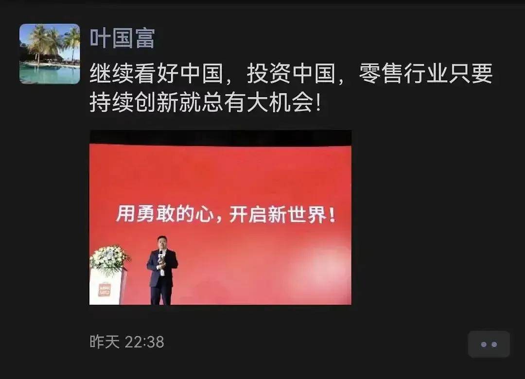 而這次對永輝的投資,似乎是他為自己“立名”的第二場戰(zhàn)役。值得一提的是,關于這一樁交易,據說葉國富在朋友圈回應:“大家都看不懂就對了,如果看得懂我就錯了”(未經本人證實)。