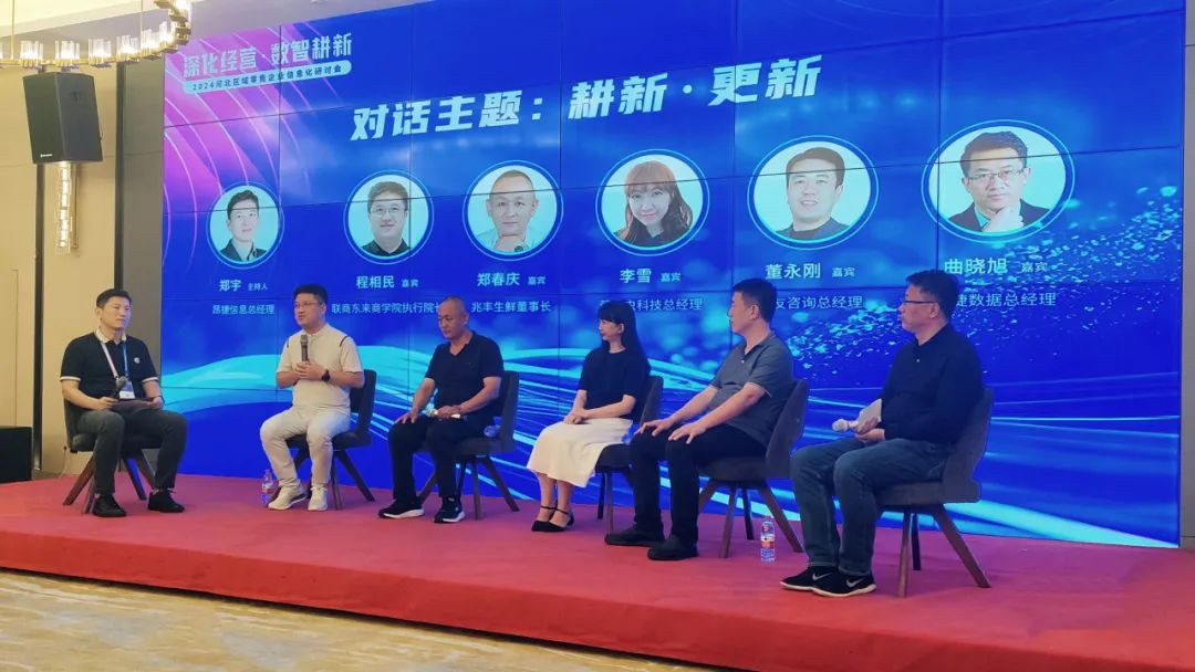 圓桌對話環(huán)節(jié)由昂捷信息總經(jīng)理鄭宇先生主持,邀請了聯(lián)商東來商業(yè)研究院執(zhí)行院長程相民、兆豐生鮮董事長鄭春慶、螢火蟲流通信息科技總經(jīng)理李雪、智友咨詢總經(jīng)理董永剛、昂捷數(shù)據(jù)總經(jīng)理曲曉旭作為對話嘉賓,展開了熱烈而深入的交流探討。