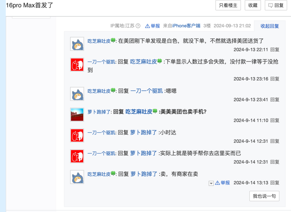 圖注:貼吧用戶討論搶購iPhone16。