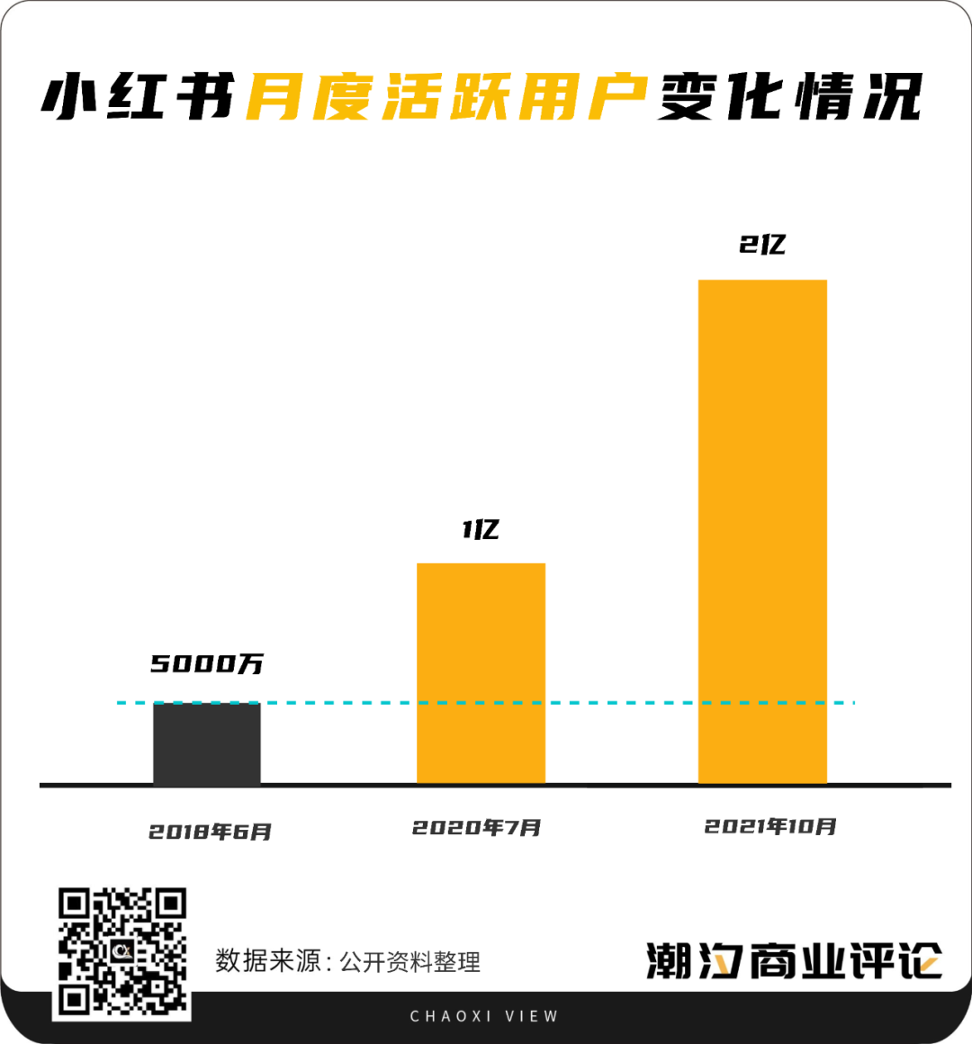 2017年小紅書用明星效應(yīng)打開破圈之路,引入林允、吳謹(jǐn)言、戚薇、張雨綺等人,2018年6月,小紅書月度活躍用戶(MAU)突破5000萬;2020年7月,小紅書MAU突破1億;15個月后,MAU又突破2億。