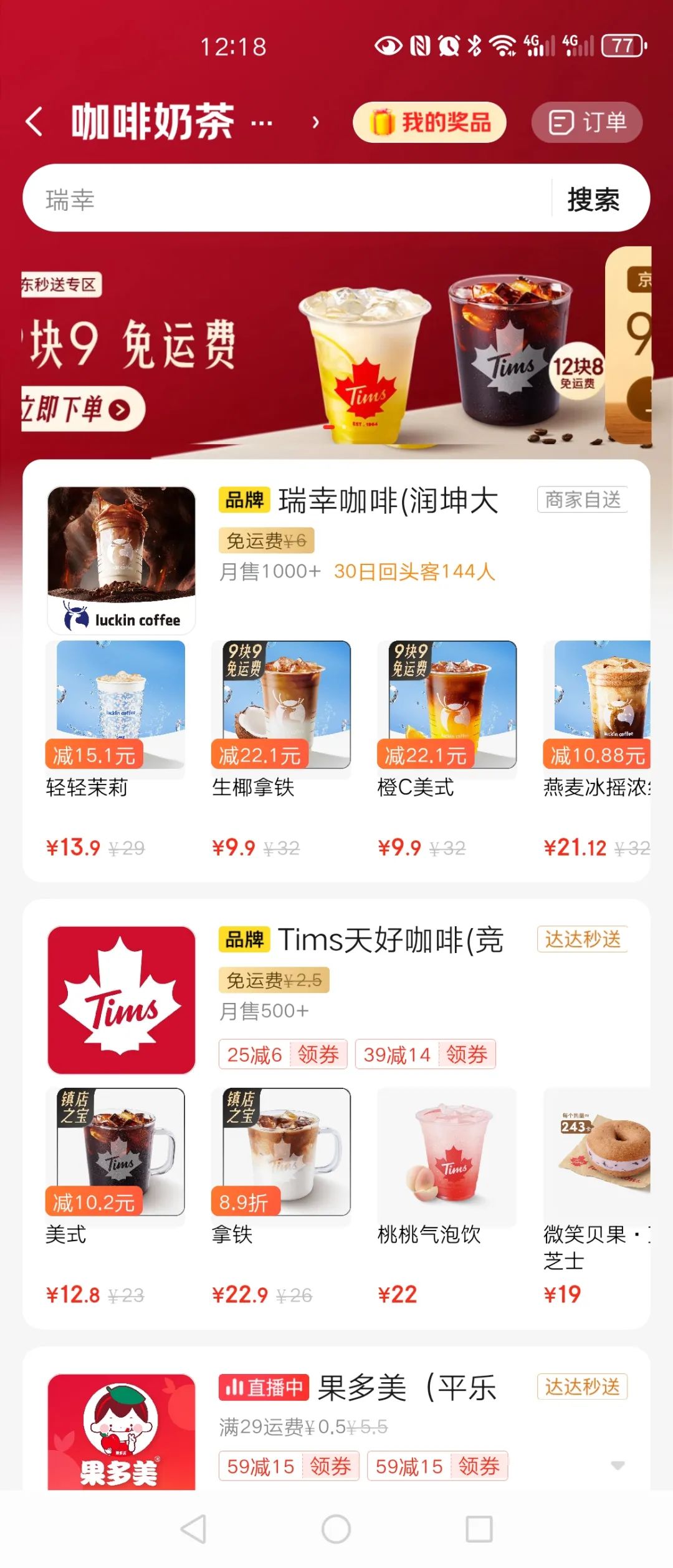 近日,筷玩思維注意到,京東在其“秒送”頻道上線了一個“咖啡奶茶”專區(qū)(價格便宜且還免運費),瑞幸咖啡、Tims天好咖啡、果多美、切果派、永和大王等品牌已入駐。