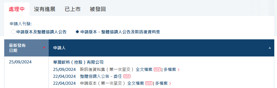 9月25日晚,華潤(rùn)飲料(控股)有限公司通過(guò)港交所上市聆訊,聯(lián)席保薦人為美銀證券、中銀國(guó)際、中信證券、瑞銀集團(tuán)。