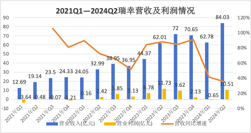 回顧瑞幸近三年經(jīng)營數(shù)據(jù),營收呈現(xiàn)較為穩(wěn)定的增長。盡管2024年Q2營收增速有所放緩,但依舊高達(dá)35.51%,營收也達(dá)到了歷史新高——84.03億元。
