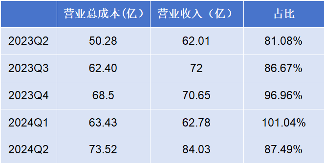 問題在于,成本增長的同時,營收并沒有呈現(xiàn)對應(yīng)速度的增長。