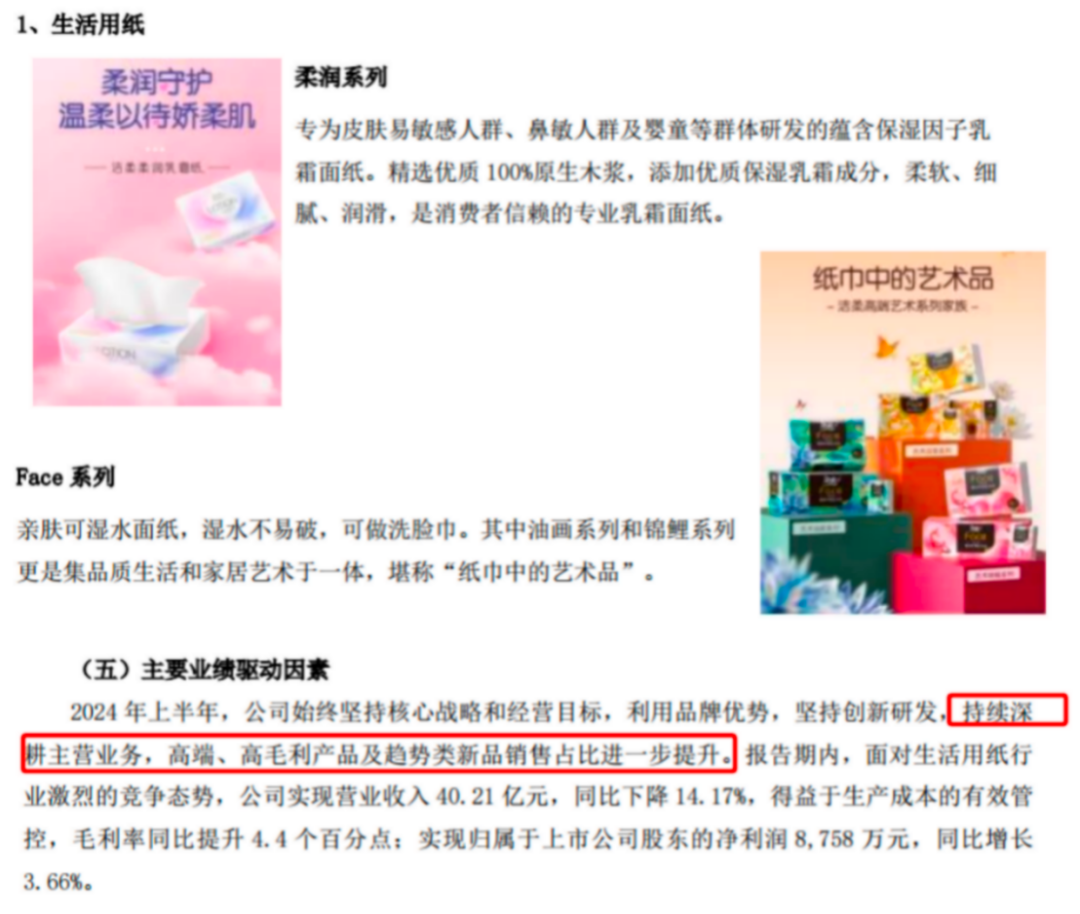 在財(cái)報(bào)中,中順潔柔也明確地提到了這一點(diǎn),稱(chēng)將持續(xù)深耕主營(yíng)業(yè)務(wù),將高端高毛利的產(chǎn)品銷(xiāo)售占比進(jìn)一步提高。