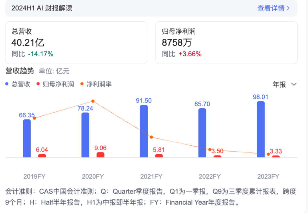 按照計(jì)劃內(nèi)規(guī)定,2024年的業(yè)績(jī)考核需要全年?duì)I業(yè)收入不低于110億元,以目前上半年的40億元營(yíng)收來(lái)看,全年的業(yè)績(jī)考核目標(biāo)稍顯吃力。
