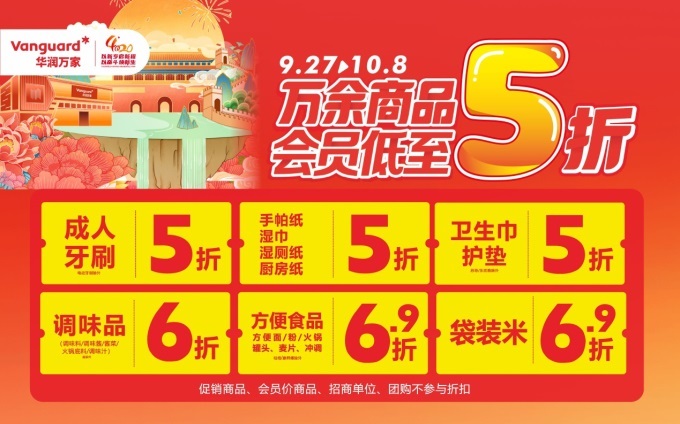 華潤(rùn)萬(wàn)家多重優(yōu)惠迎國(guó)慶,萬(wàn)余商品會(huì)員低至5折