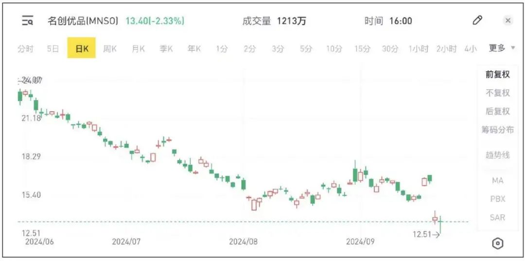 截至北京時(shí)間9月25日,名創(chuàng)優(yōu)品美股報(bào)收13.40美元,為近期的最低水平。