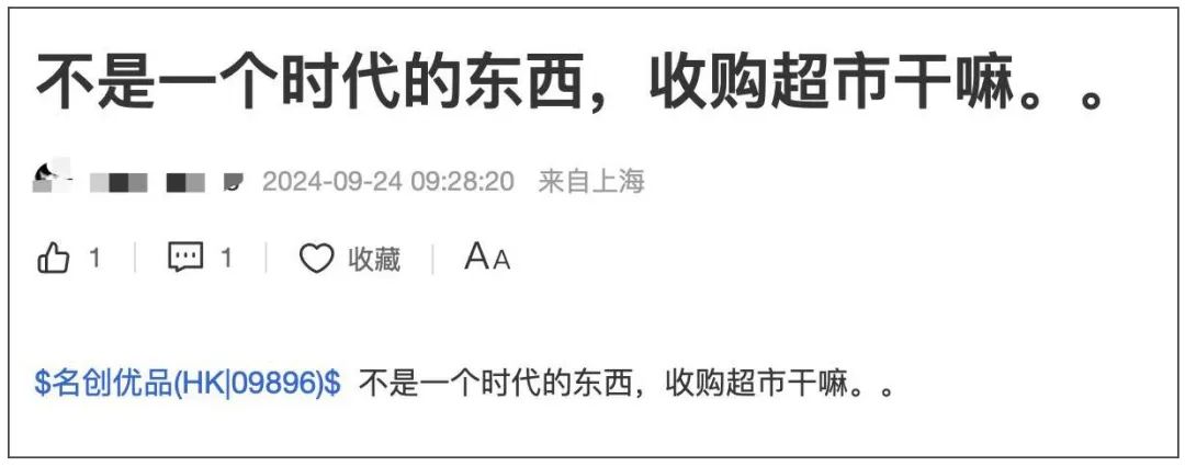 在社交平臺(tái),亦有網(wǎng)友表示,“不是一個(gè)時(shí)代的東西,收購超市干嘛!