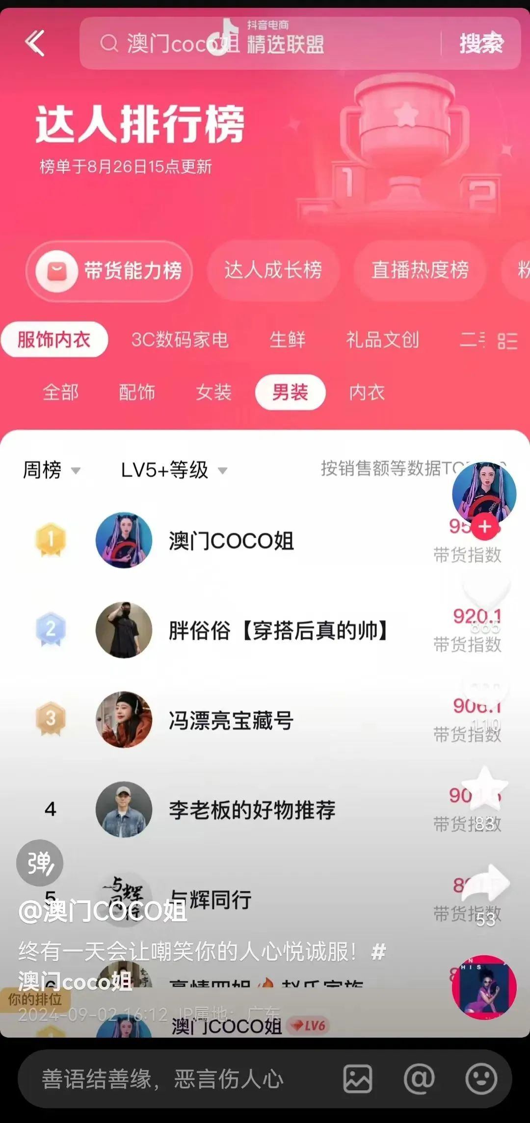 最終,艾媒咨詢發(fā)布的《2024年度中國(guó)帶貨主播百?gòu)?qiáng)榜》中,蛋蛋高居第二,甚至超越了位列第五的師父辛巴,成為前十名中唯一的女性主播,彰顯了其非凡的實(shí)力與影響力。