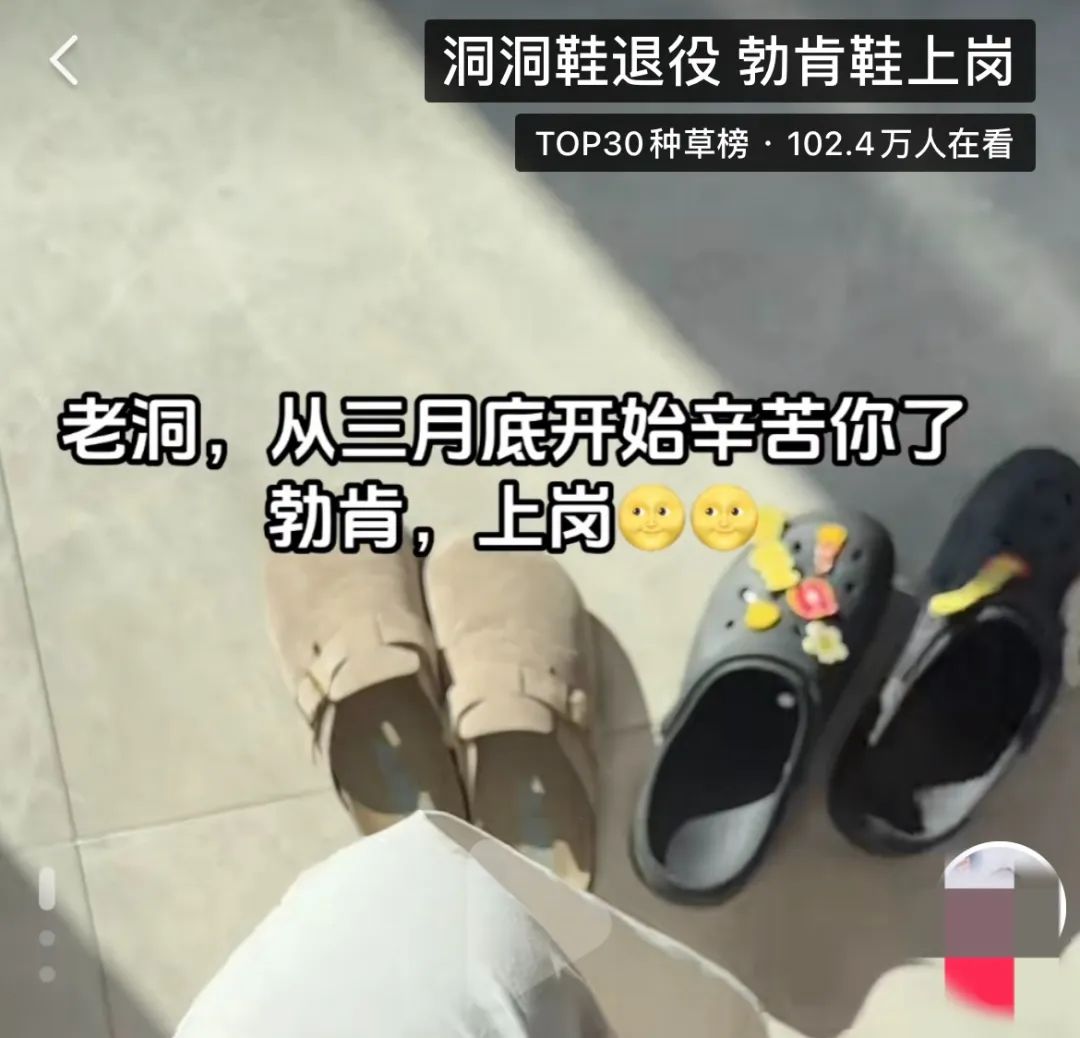起因是天氣漸涼,網(wǎng)友們紛紛曬出換季裝備。其中“洞洞鞋退役勃肯鞋上崗”的話題刷爆網(wǎng)絡(luò),網(wǎng)友紛紛曬出“包漿”勃肯鞋,“洞洞鞋辛苦了,天冷了,勃肯上崗”,再次印證這個(gè)超級(jí)時(shí)尚單品的實(shí)力。