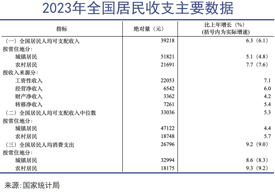當大城市里的消費主義逐漸祛魅,縣域小城消費卻一直呈現(xiàn)消費升級的趨勢。2023年,全國居民人均可支配收入39218元,同比(名義,下同)增長6.3%,城鎮(zhèn)居民人均可支配收入51821元,增長5.1%;農村居民人均可支配收入21691元,增長7.7%。2023年,全國居民人均消費支出26796元,同比增長9.2%,城鎮(zhèn)居民人均消費支出32994元,增長8.6%;農村居民人均消費支出18175元,增長9.3%。