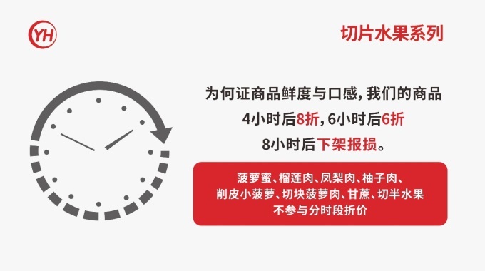 堅(jiān)持日清工作,切塊水果系列嚴(yán)格遵守468折價(jià)原則,超過(guò)4小時(shí)八折銷(xiāo)售,超過(guò)6小時(shí)六折銷(xiāo)售,超過(guò)8小時(shí)直接下架報(bào)損。包括賣(mài)場(chǎng)葉菜、肉禽、水產(chǎn)等部分商品也會(huì)根據(jù)當(dāng)天實(shí)際情況做日清折價(jià),以此保證商品的新鮮度及口感,讓顧客買(mǎi)到更加新鮮優(yōu)質(zhì)的商品。