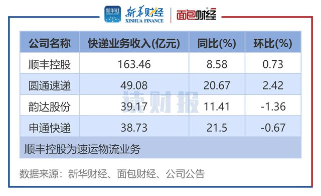 前段時間,三通一達、順豐都陸續(xù)公布了8月的經(jīng)營數(shù)據(jù),其中順豐、圓通、申通、韻達當月的單票收入分別為15.67元、2.17元、2元、1.99元,同比為-5.26%、-7.08%、-4.76%、-8.29%。