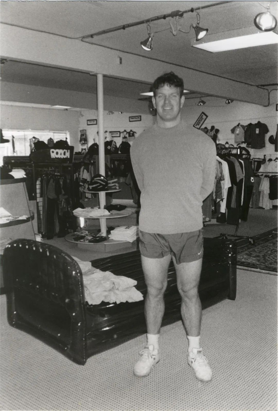 在采訪之前,Chip還沒(méi)吃午飯,怕耽誤接下來(lái)的采訪時(shí)間他提議可以邊吃邊聊。Chip Wilson給人的第一印象是標(biāo)準(zhǔn)的“體育生”,個(gè)子高塊頭大,身穿始祖鳥短袖和薩洛蒙運(yùn)動(dòng)鞋,為自家品牌【代言】。
