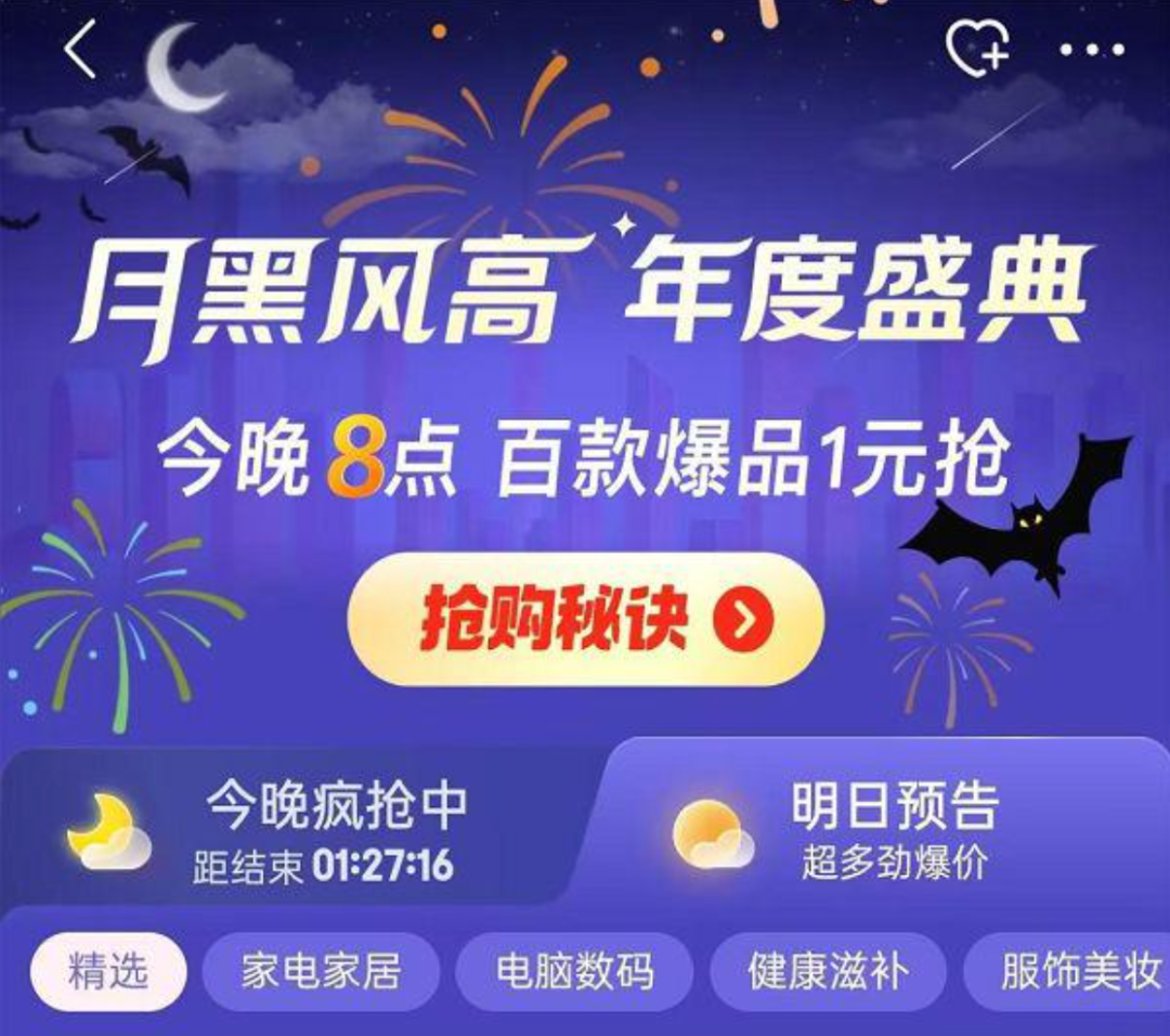 換言之,“月黑風(fēng)高”既是京東電商所有促銷活動的源頭、雛形,也為京東的電商之路奠定了堅實(shí)基礎(chǔ),象征著京東對于正品、低價、服務(wù)等特質(zhì)的重視。當(dāng)電商促銷活動逐漸變多,“月黑風(fēng)高”這一經(jīng)典玩法一度偃旗息鼓,直到2023年才隨著京東大力推動低價策略重回臺前——每晚8點(diǎn)在京東APP搜索“月黑風(fēng)高”進(jìn)入秒殺頻道,便可參與搶購。
