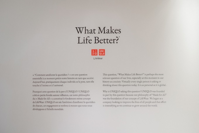 今年10月1日至10月5日,優(yōu)衣庫為了慶祝品牌40周年,在巴黎舉辦了一場(chǎng)以“生活,何以致美(What Makes Life Better)”為主題的沉浸式體驗(yàn)博覽會(huì),向公眾傳播它從2013年啟用的品牌理念“服適人生”。