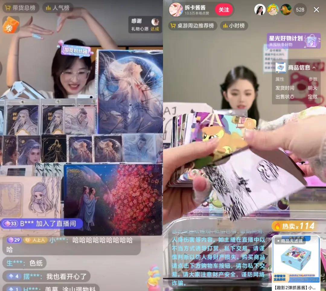 最后,代理經(jīng)銷商也是一道難關。對難以直接觸達消費者的卡牌公司來說,經(jīng)銷商擁有充足的議價權,其“拿貨價”只有貨值的50%左右。另外,在熱火朝天的拆卡直播背后,許多小型卡牌公司的利潤流入了超頭主播手中。