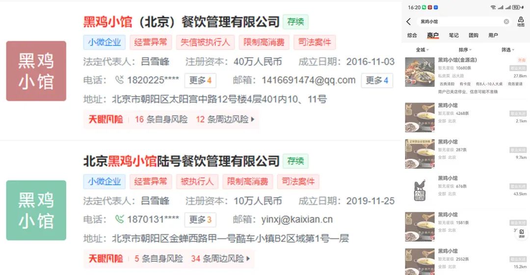 而當(dāng)職餐記者查看發(fā)現(xiàn),黑雞小館開(kāi)出的7家店,均已歇業(yè)關(guān)閉。其公司也處于異常經(jīng)營(yíng)狀態(tài),企業(yè)相關(guān)負(fù)責(zé)人被列為失信被執(zhí)行人。