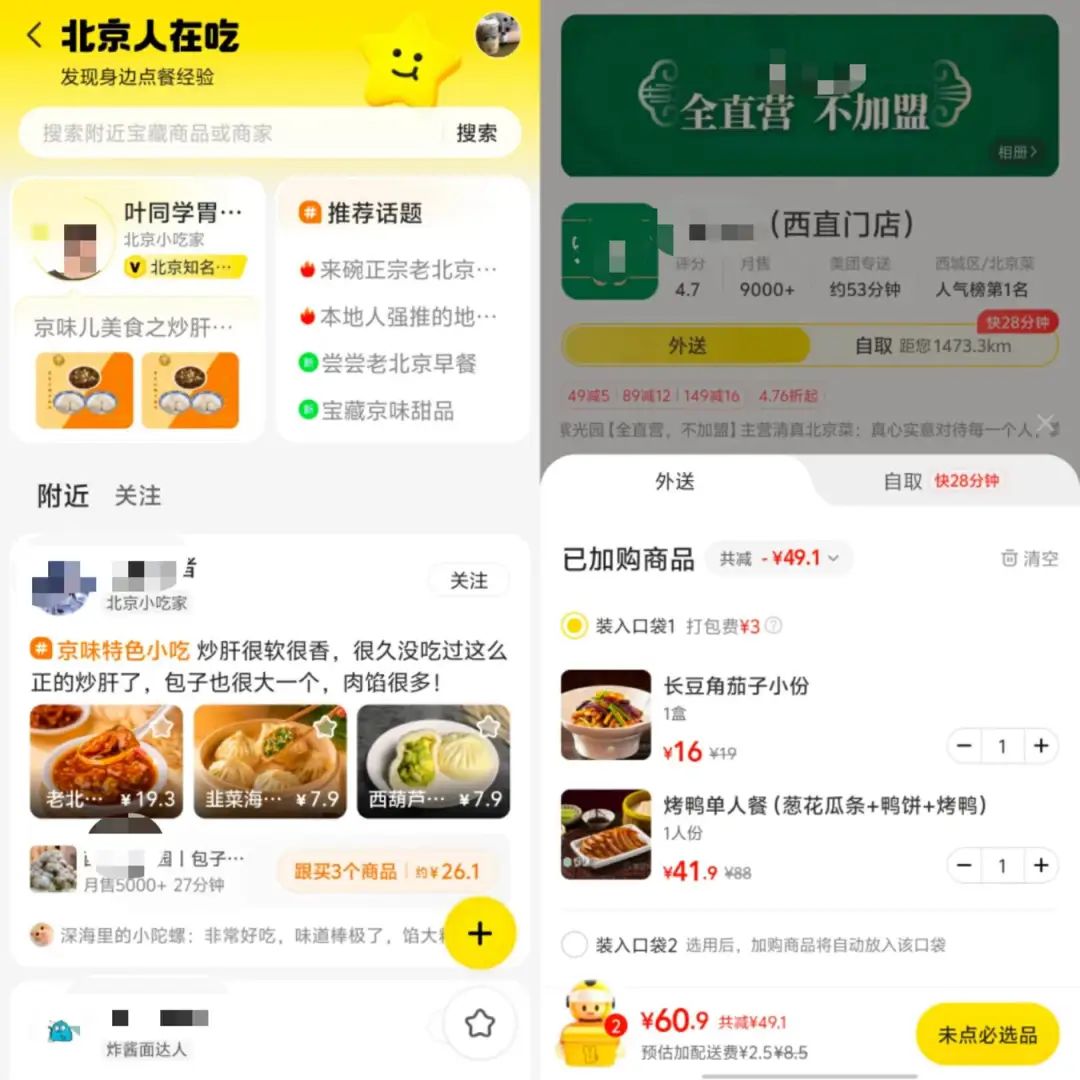 圖注:本地在吃界面和外賣下單界面。