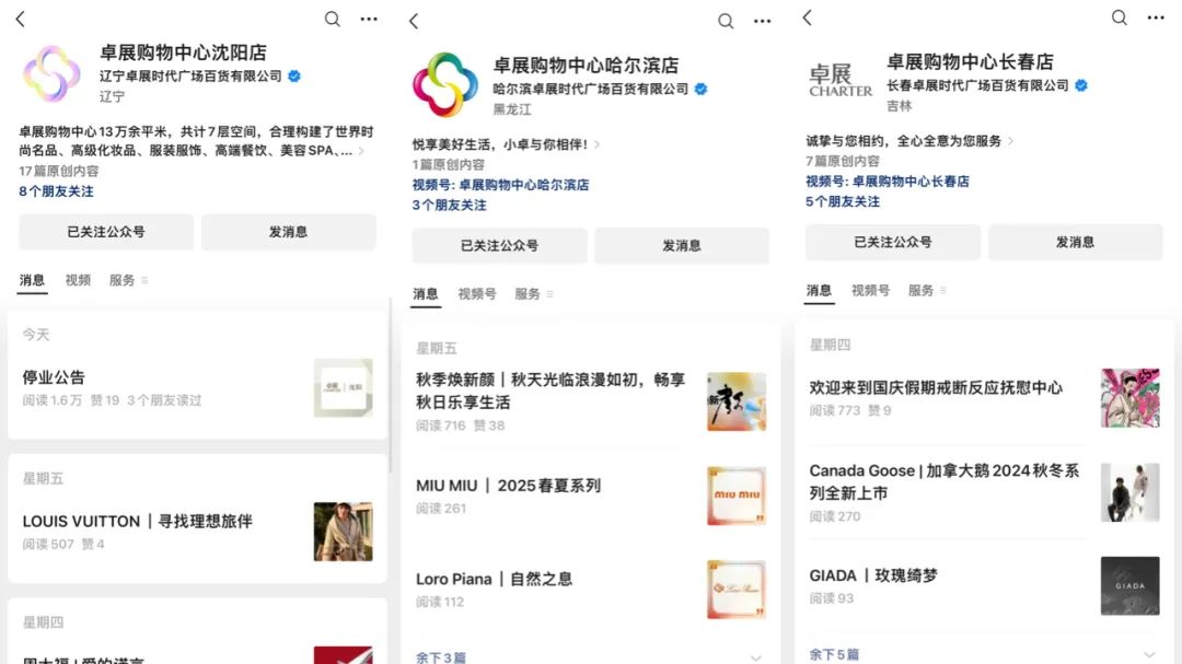 《聯(lián)商網(wǎng)》查閱發(fā)現(xiàn),沈陽卓展微博目前最后一條更新還停留在9月25日,微信公眾號雖然尚未停更,不過在發(fā)布《停業(yè)公告之前》,更多的品牌方活動而非商場營銷活動。