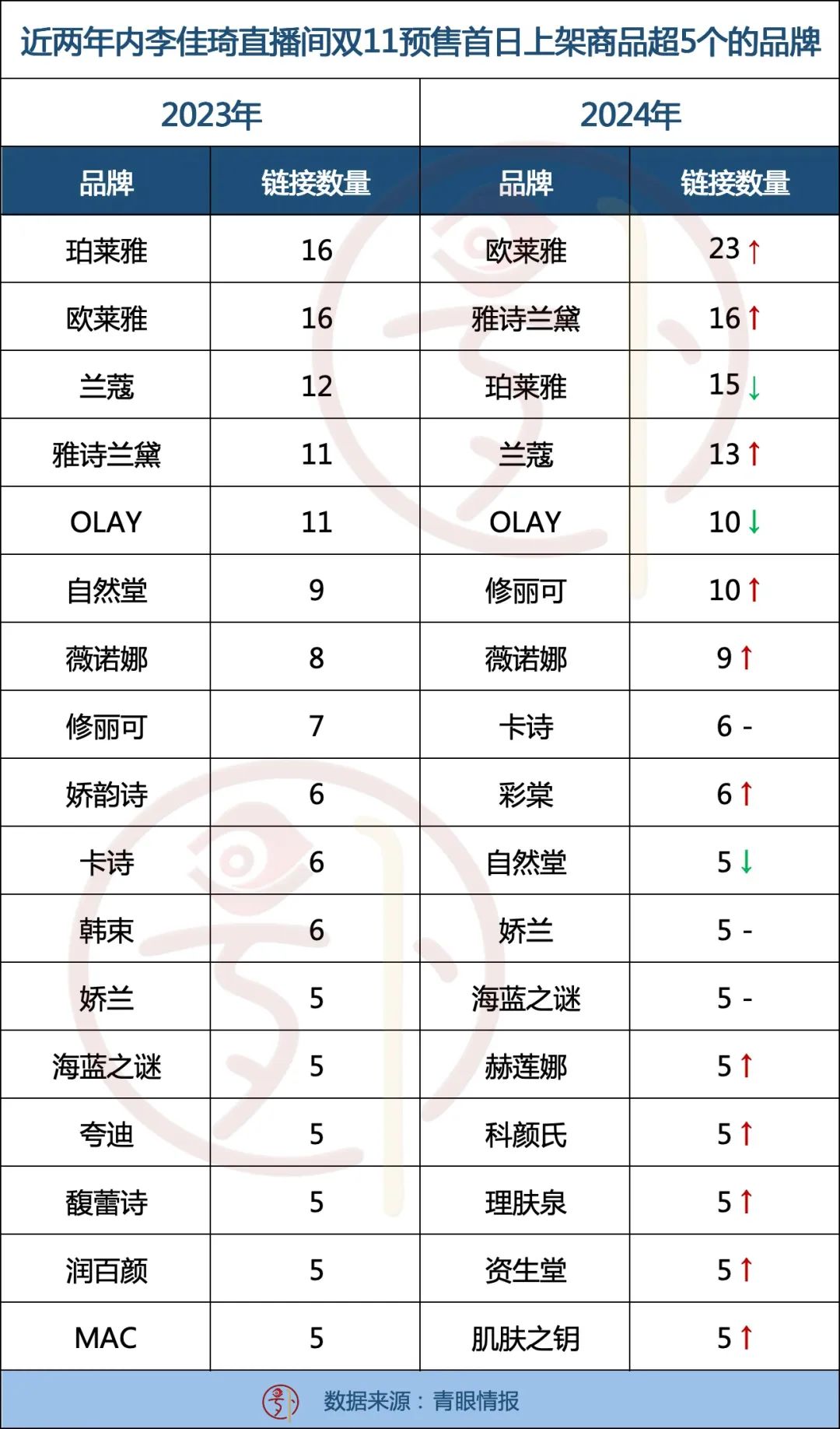 不過,珀萊雅、OLAY、自然堂鏈接數(shù)量均有小幅度減少,此前入榜的嬌韻詩、馥蕾詩、MAC、韓束、夸迪、潤百顏的產(chǎn)品鏈接均不及5個(gè)。
