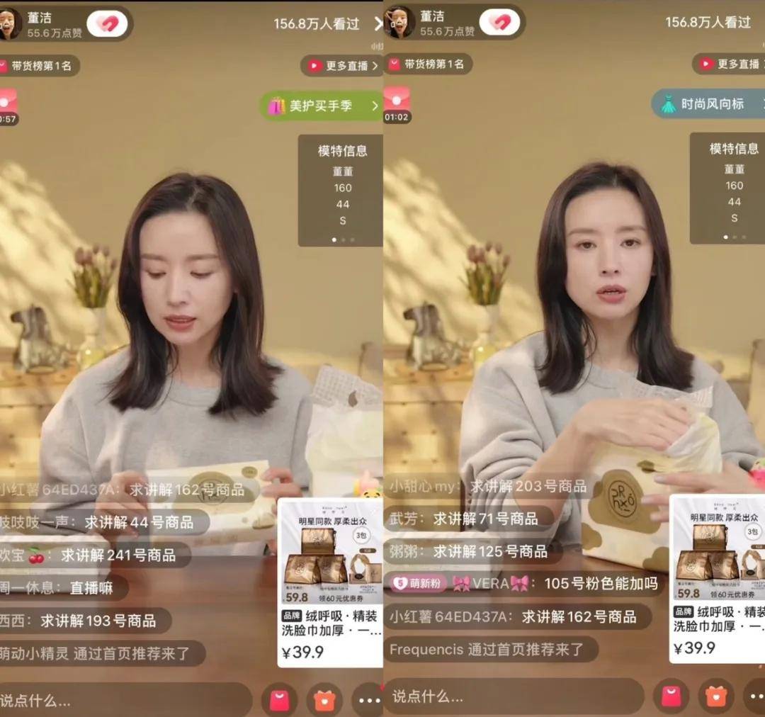 小紅書上董潔的直播間,我覺得算是一個驚喜。因為當時絨呼吸品牌很新,我們跟董潔合作的時候,只做了幾個月,而且董潔的選品很嚴格。我們在董潔小紅書首播就入選了,后來董潔還給我們播了好幾次,她自己個人非常喜歡我們的品。