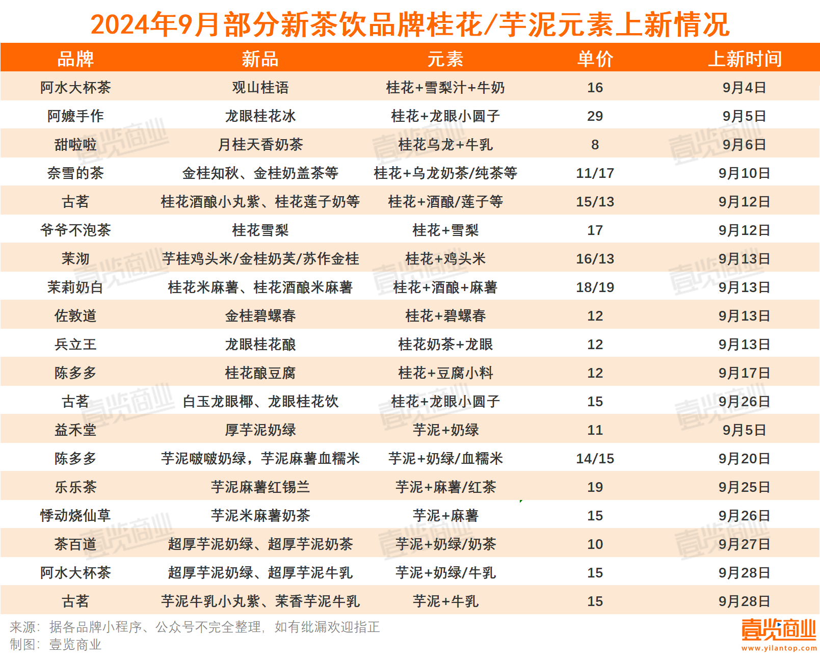 天氣轉(zhuǎn)冷,行業(yè)原料上新也有了新趨勢(shì):桂花、芋泥成為品牌最?lèi)?ài)。