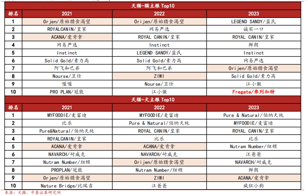其余的品牌里,除去鮮朗外,如tasteofthewild荒野盛宴、stella&chewy's星益生趣、fromm福摩、大寵愛、皇家處方糧等大多是專攻寵物賽道時間更長的海外品牌。這也反面印證了消費者對高品質(zhì)需求的訴求。