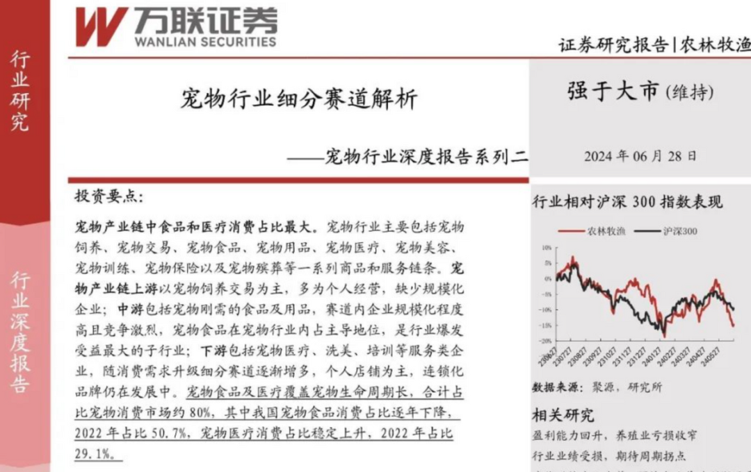 萬聯(lián)證券在6月發(fā)布的研究報告中指出,寵物產(chǎn)業(yè)鏈中食品和醫(yī)療消費占比最大。一些已上市或曾籌劃上市的公司,比如乖寶寵物、中寵股份、新瑞鵬等,都聚焦這些細分領(lǐng)域。