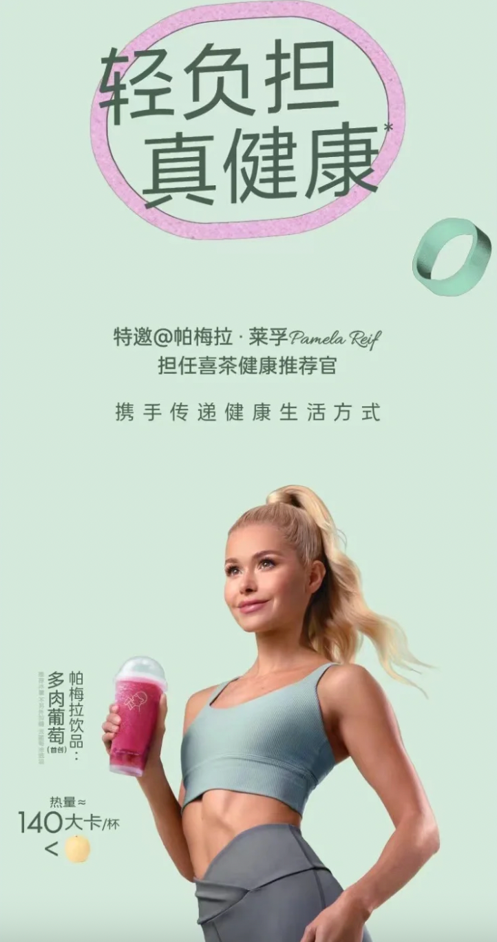 今年3月,喜茶聯(lián)合全球頂流健身博主帕梅拉推出11款“帕梅拉輕負擔推薦”系列產(chǎn)品后,“帕梅拉喝法”迅速火爆全網(wǎng),廣受“帕梅拉男孩女孩”們的追捧。據(jù)悉,“帕梅拉輕負擔推薦”飲品銷量近3000萬杯。