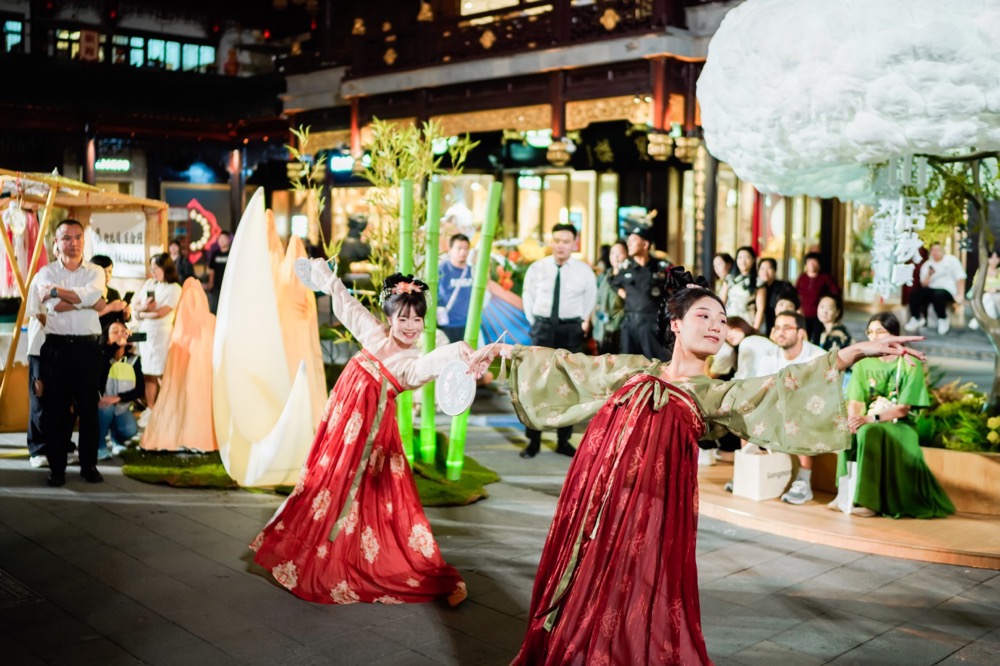 除此以外,豫園商城以《山居秋暝》為主要靈感線索,定制樓宇泛光,打造詩意秋日印象。值得一提的是,此次活動期間,還會有精彩的民樂表演和《畫秋》國風(fēng)舞蹈,帶游客流連于絢麗光影,品賞曼妙舞姿。更多“秋日漫游記”精彩日程正紛至沓來,波司登,我的爸爸是條龍等多個快閃也將落位豫園商城,還有活動限定會員禮遇如約登場。